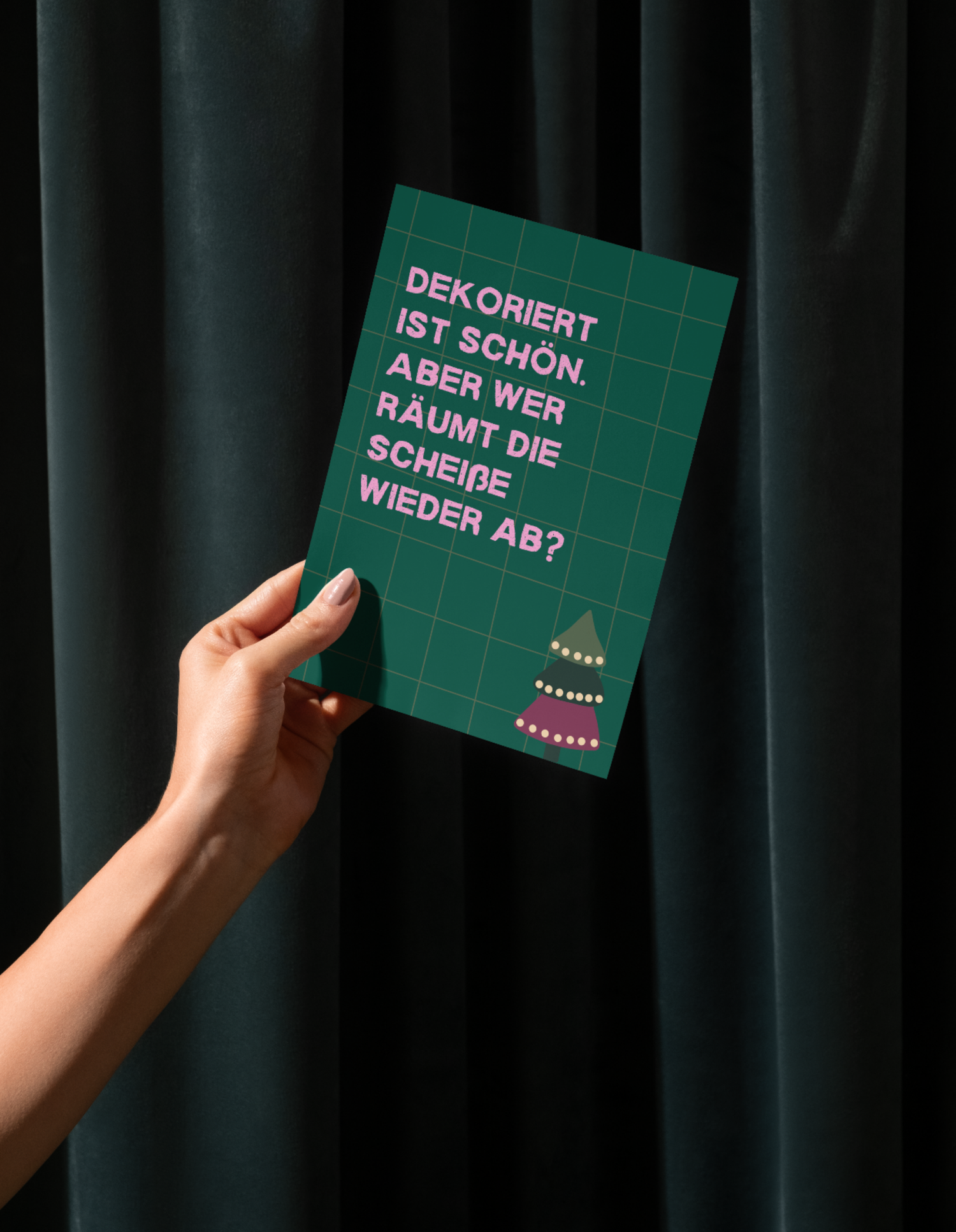 Lustige X-Mas Postkarte "Dekoriert ist schön, aber wer räumt die Scheiße wieder auf?"