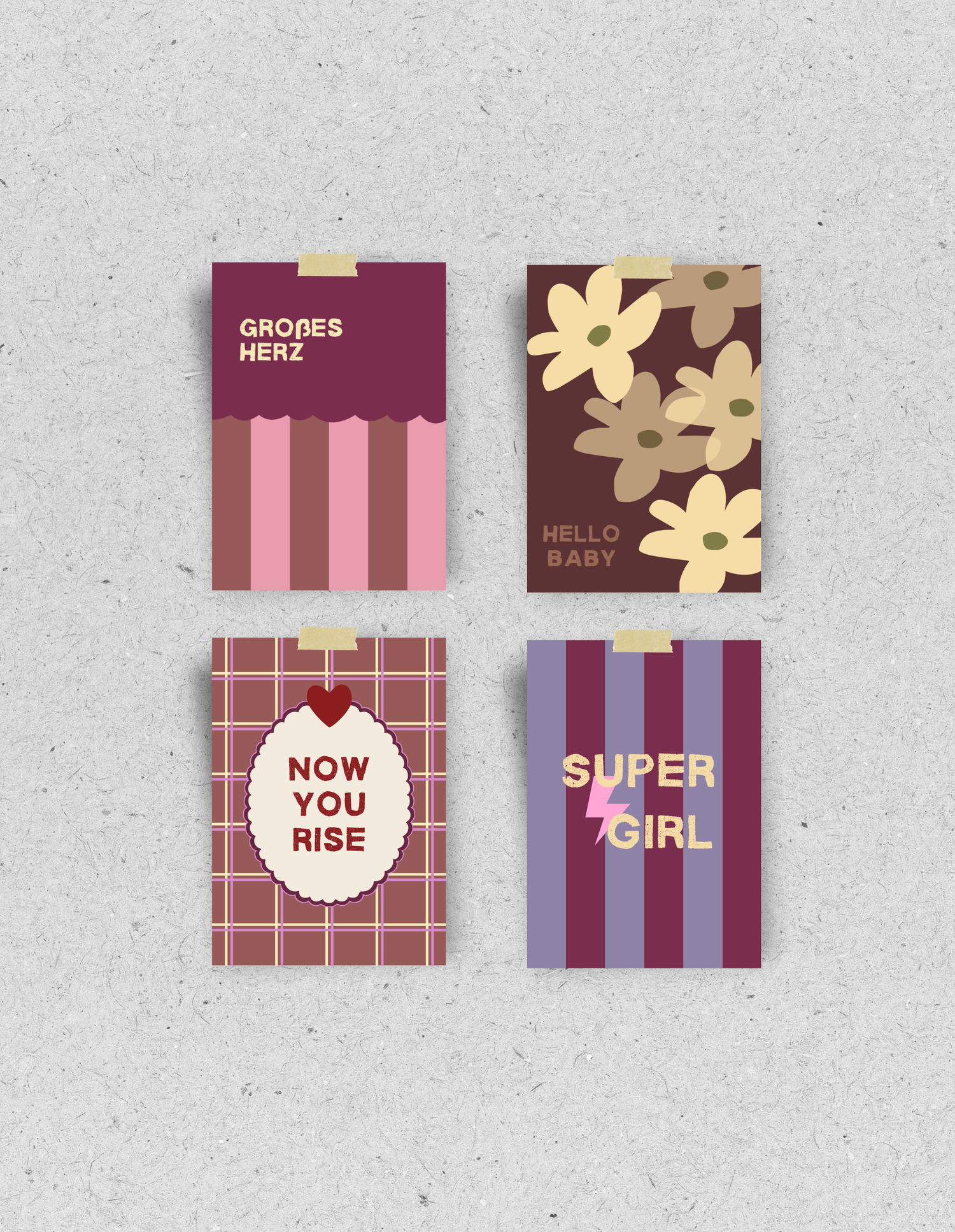 Gedruckt auf hochwertigem 350 g Postkartenkarton überzeugt sie mit stabiler Haptik, feiner Optik und einem Design, das zeitlos bleibt. Sanft, stilvoll und voller Herz.